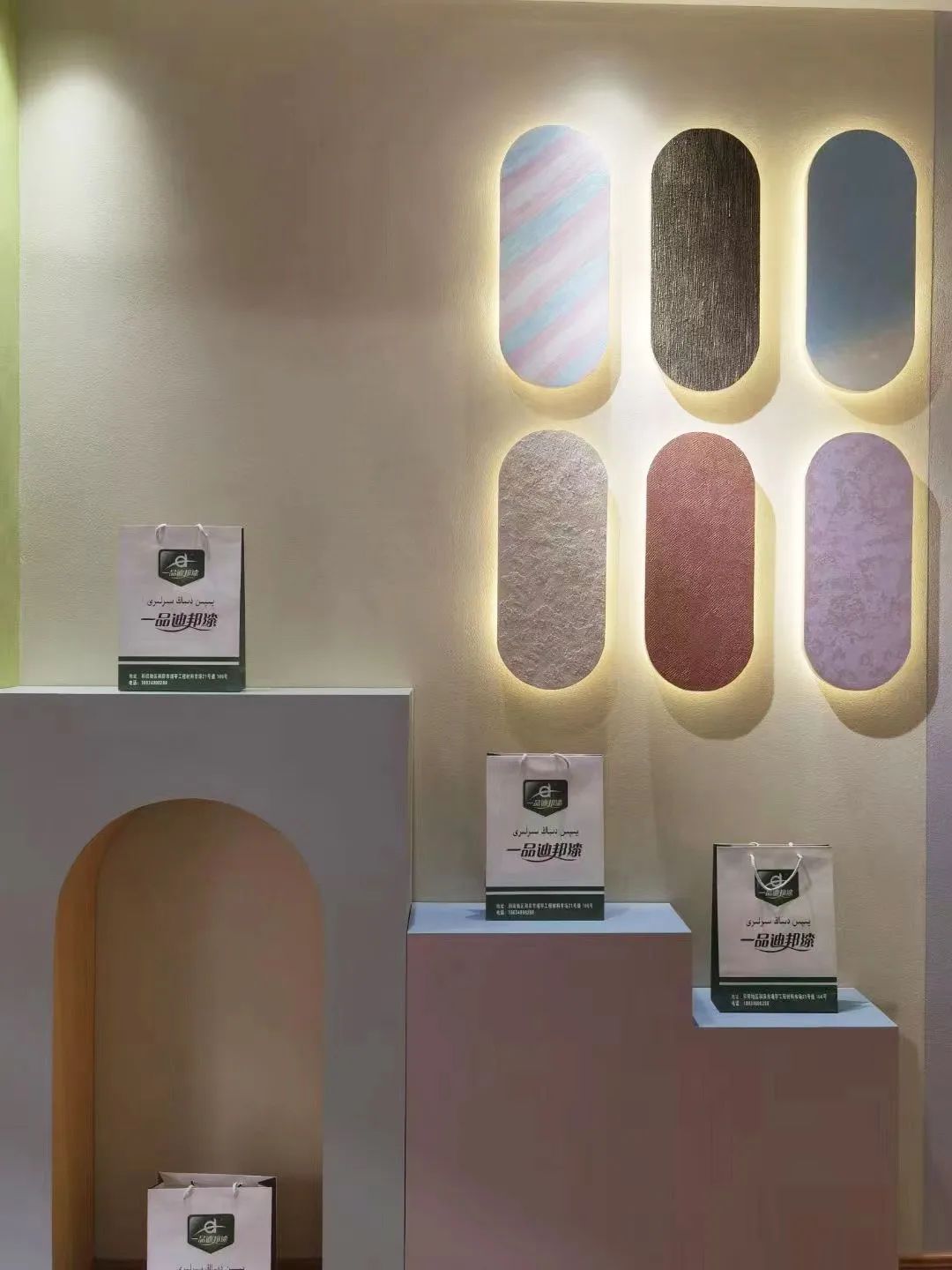 新疆和田一品迪邦藝術(shù)漆專賣店以全新的是視覺效果,繽紛多彩的顏色,實(shí)刷上墻身的產(chǎn)品展示,從視覺、觸覺和嗅覺,以最直觀、最真實(shí)的方式展示一品迪邦涂料產(chǎn)品的環(huán)保、耐用,美觀等性能。